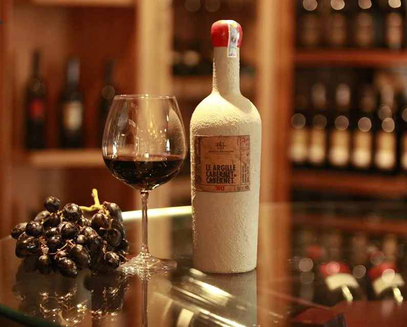 Rượu vang Le Argille Cabernet Di Cabernet chai xi măng được sản xuất theo phong cách pha trộn kiểu Bordeaux mà không có sự tham gia của nho Merlot. Hai giống nho làm nên loại rượu này không phải kiểu truyền thống của Ý, mà là sự sáng tạo phá cách kiểu Super Tuscan vô cùng xuất sắc.